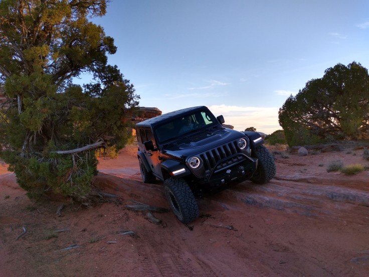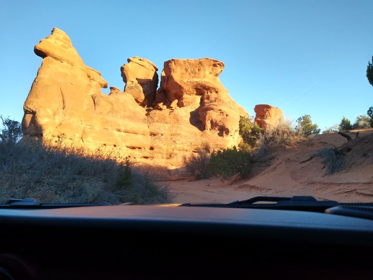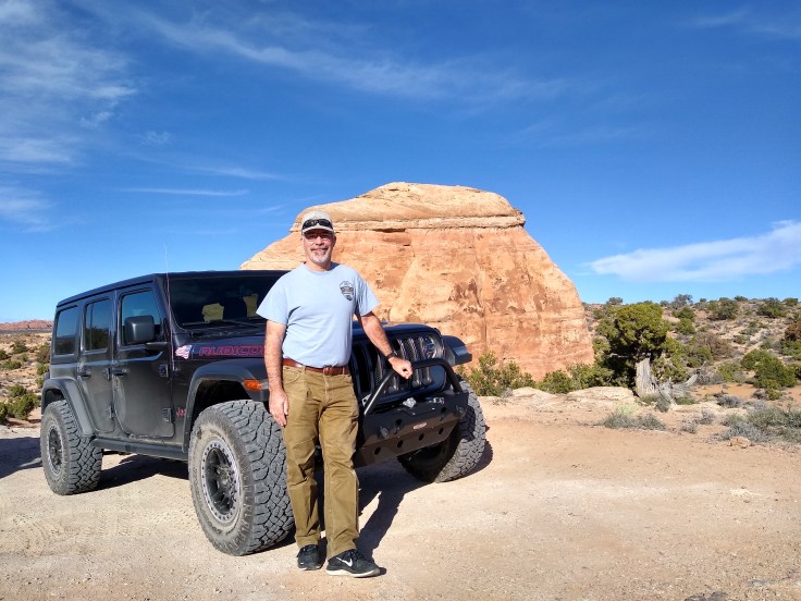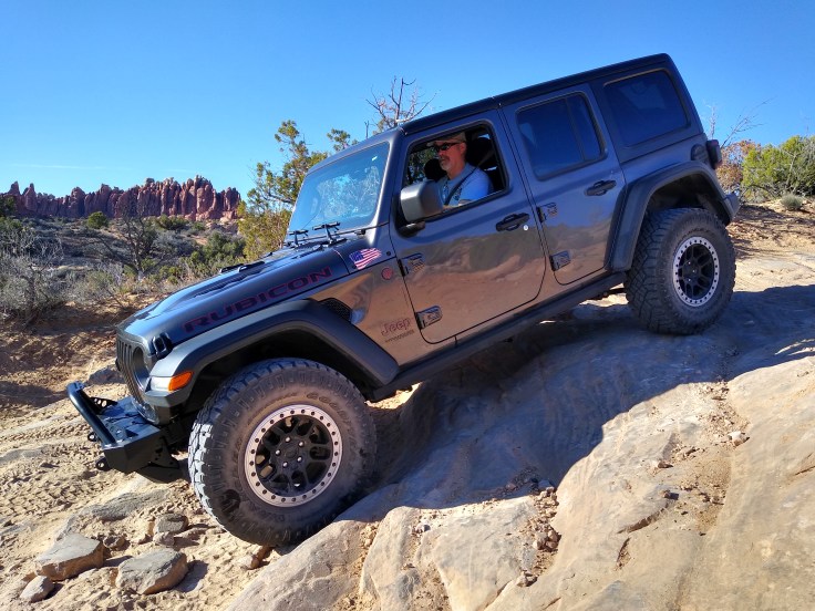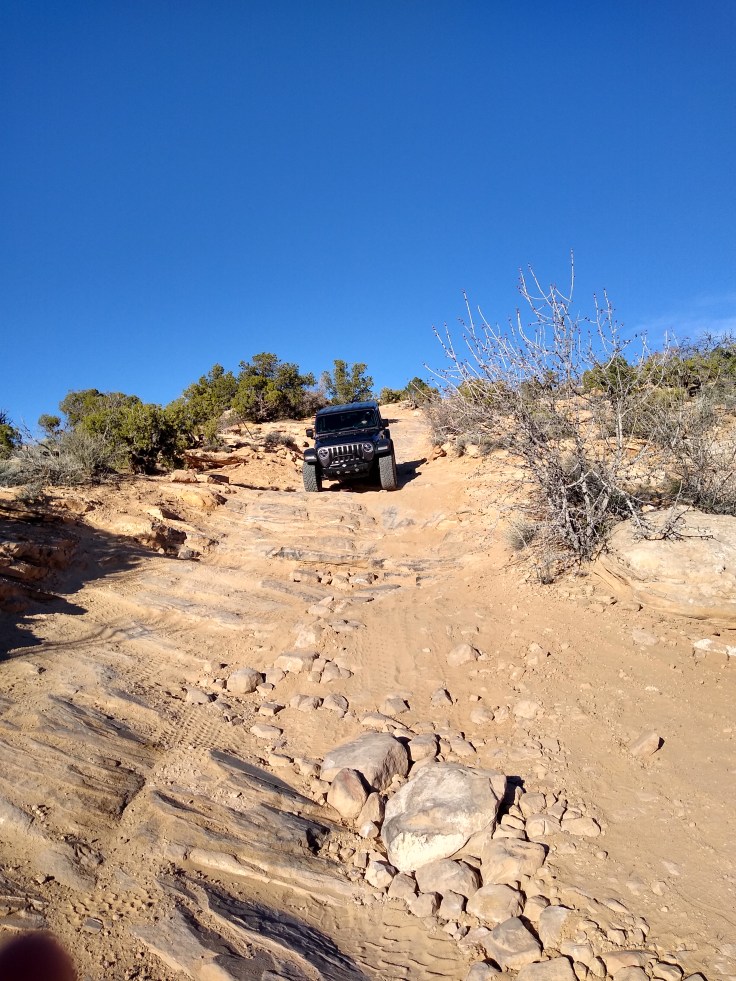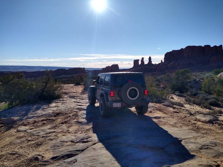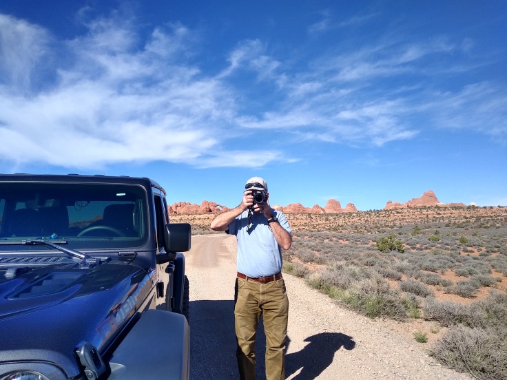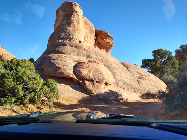 Then after our usual breakfast routine Fred decided he needed to wash the Jeep before we went 4wheeling. In all honesty, she was filthy, but we were going to get her filthy anyhow… So we cruised around Moab and found a self-service car wash. And for the next 30 minutes Fred soaped and polished his Jeep. He enjoys detailing cars like you wouldn’t believe! But we had other goals for the day beside rubbing on the Jeep.