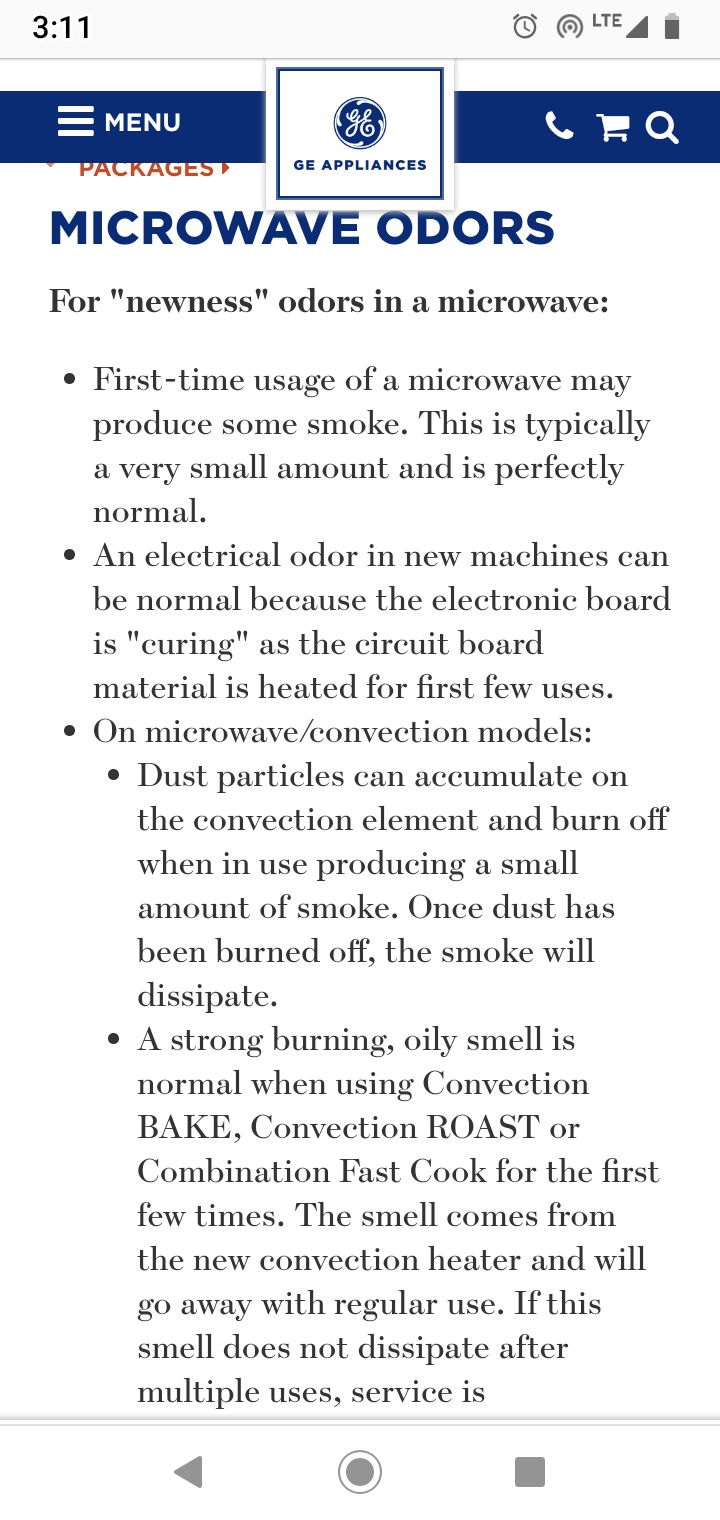 Now I am frantically Googling, “New microwave smells.” And I find mixed info. Everything from “Call Sears right away,” to, “It’s totally normal.”