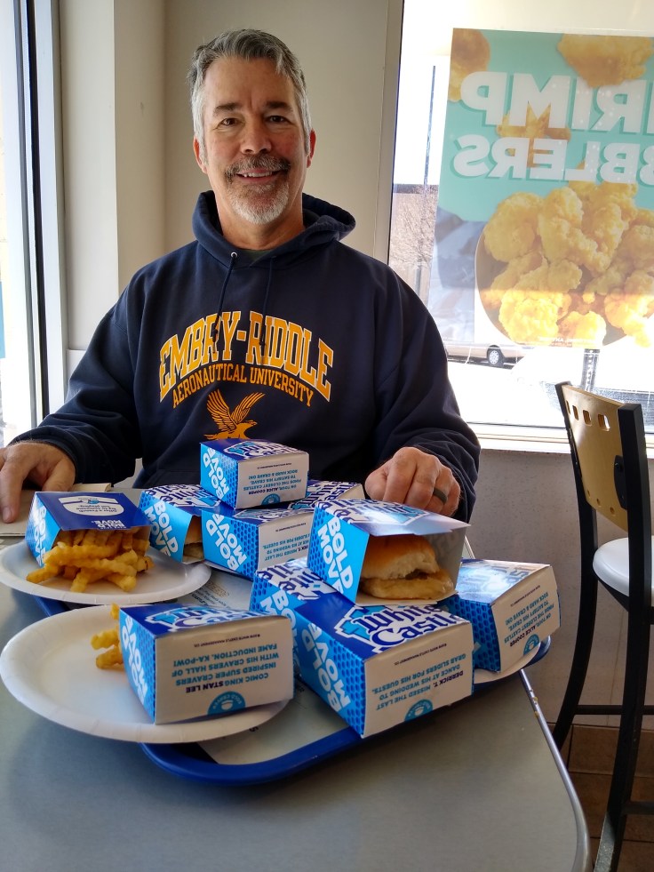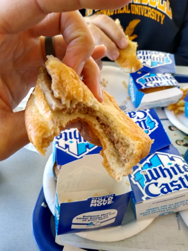 We stopped again for lunch about 30 minutes later, White Castle Burgers in Wentzville, MO. We were excited to try them as we have heard so much about them. We ordered a “sharing meal combo” that came with a 10 stack of sliders, 2 fries, 2 drinks.