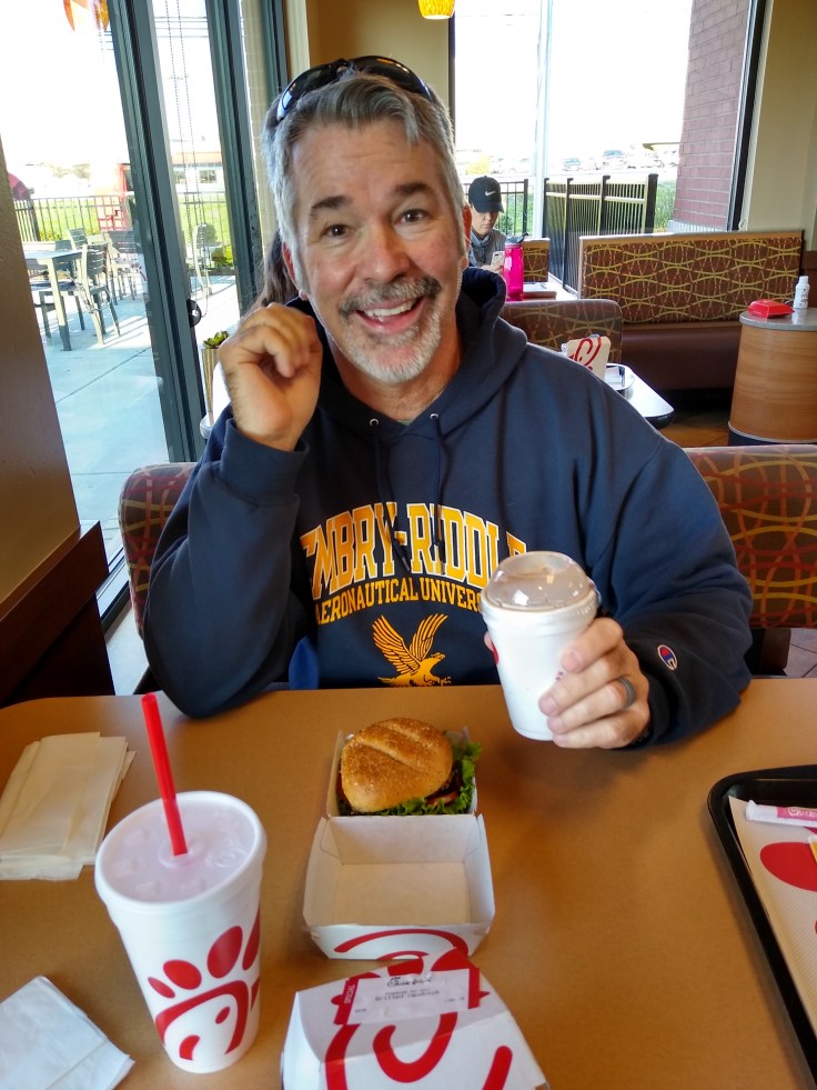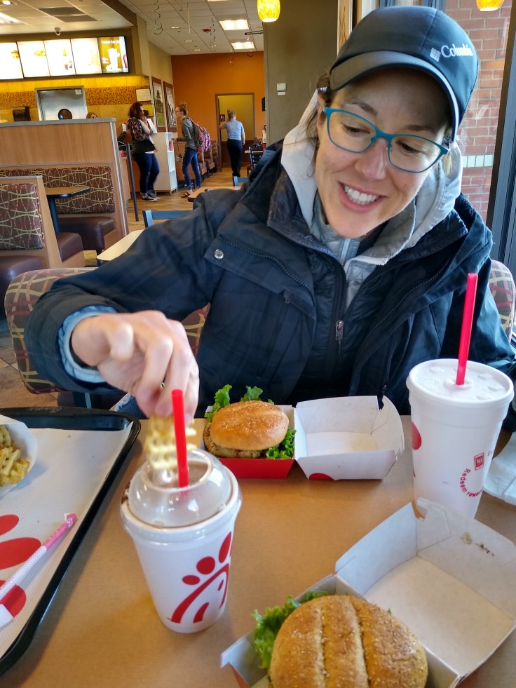 Fred has never been inside a Chick-fil-A before. The cashier got a chuckle out of that. So he treated himself to a chocolate milkshake to celebrate. I dipped my fries in it…so good!