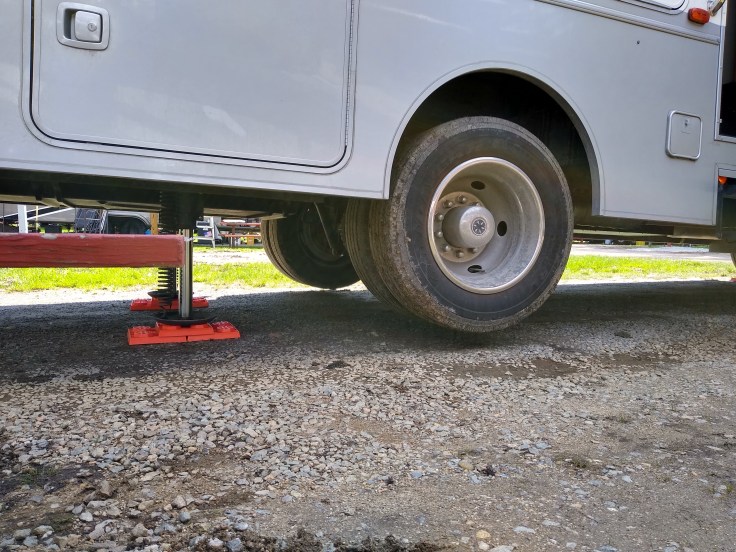 It started raining pretty heavy during dinner. The wet weather is stalking us! This camp ground was already pretty soggy and unlevel when we got here so hopefully we can get out if here tomorrow. The levelers got a workout today.