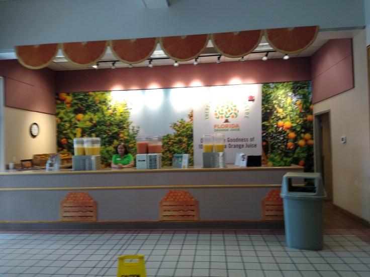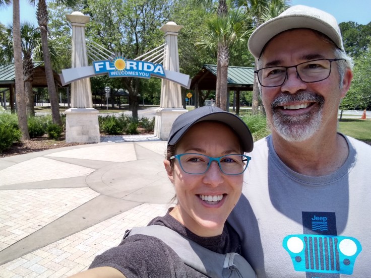 I spent the morning drive retyping the blog that somehow disappeared on me last night. I was just wrapping it up when we stopped at the Florida Welcome Center for lunch around 12:30pm. We had some quick leftovers in the RV and then walked up to the main building. We were still eating a few chocolate chip cookies as we walked in. (We do know how to travel in luxury 😁)