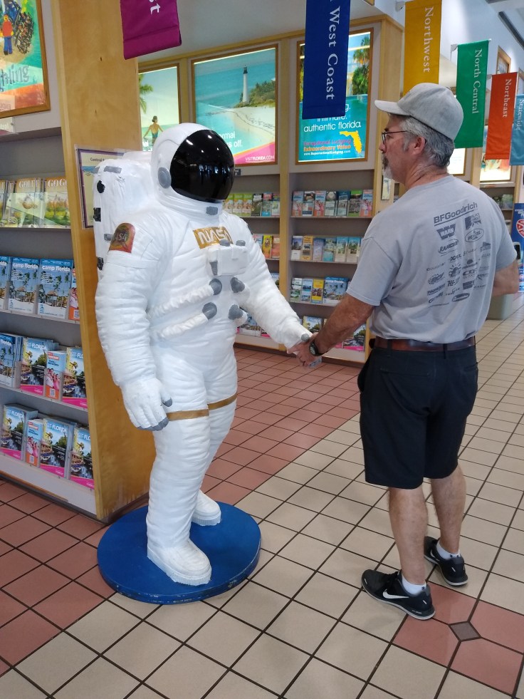 The Welcome Center along the I-95 is quite nice. They have lots of interesting statues, like this colorful dolphin and a life-size spaceman.