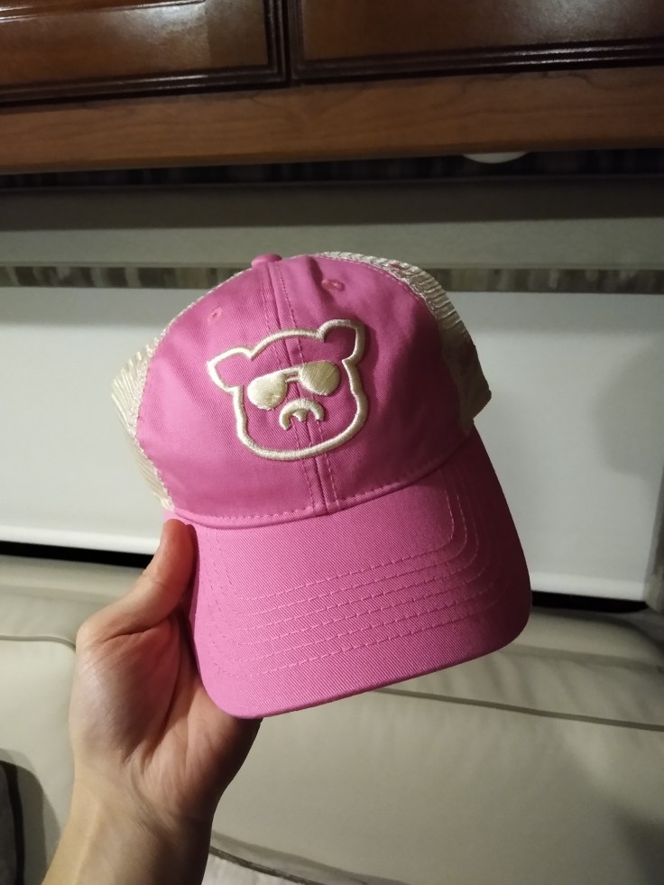 Fred bought me a pink hat with a pig on it. I thought that was the funniest thing… It’s a very cop-like pig so it seemed fitting. And they had a child-size cap that would actually fit my tiny head!