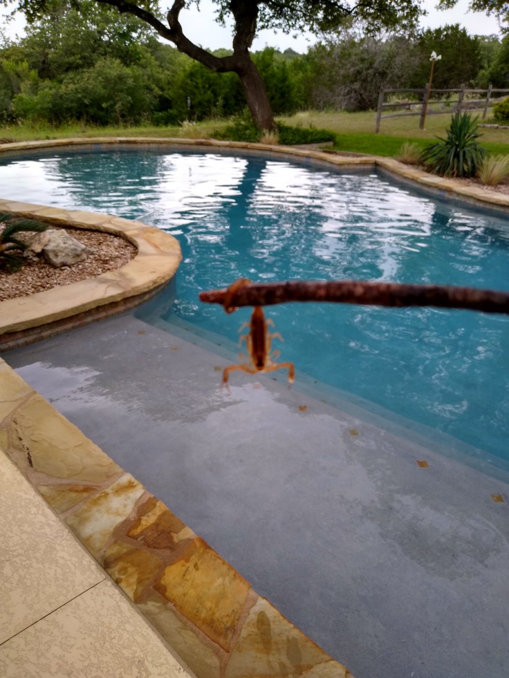After I swam, I did a little yoga on the pool deck and enjoyed the amazing view. It was so relaxing and refreshing here. There’s so much wildlife to see just in the backyard alone. Some of it is kind of scary… I found this little scorpion this morning.