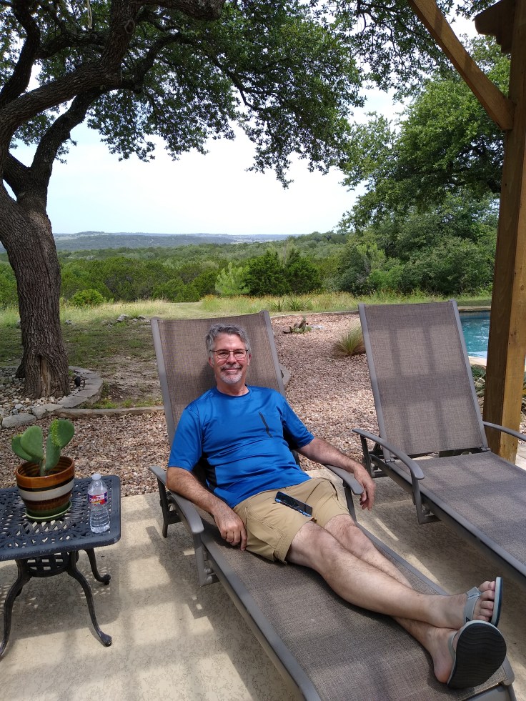 It was cool and overcast today, with a 20% chance of rain. So I wanted to get in the pool before it started raining. Nadine went inside to clean up after breakfast so I took a dip in the pool.