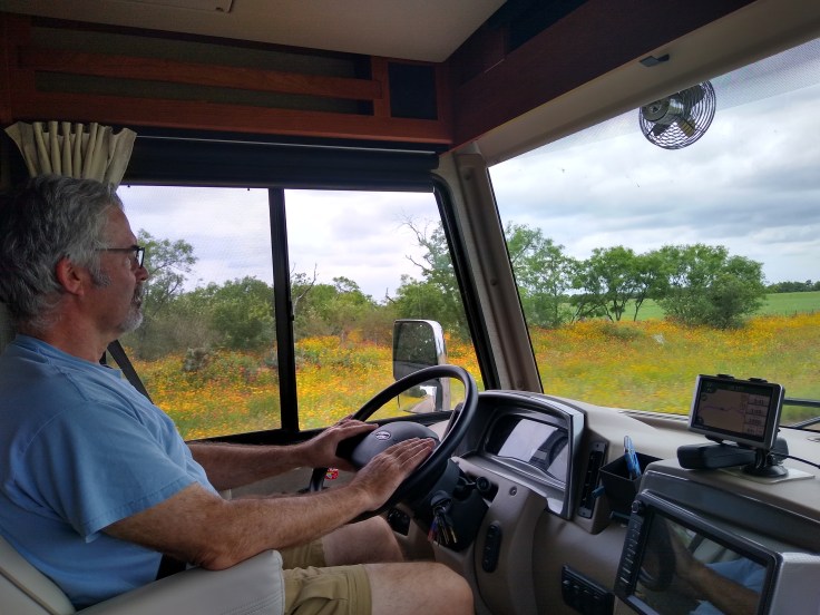 We met our goal of hitting the road by 11 am. I wish we had stopped at the In and Out in Leander, TX for lunch but it just seemed to early under the circumstances. Fred always likes to put some distance in early on Departure Days.