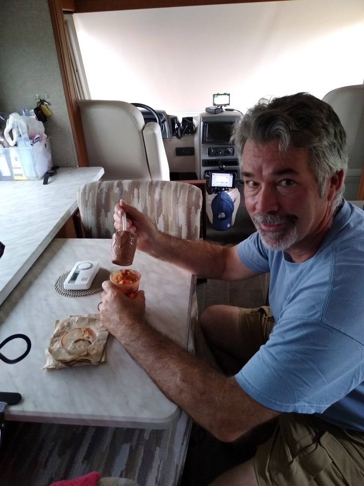 We stopped for a little nap about halfway between Roosevelt and Sonora, TX around 3pm. We rested for about an hour there. Fred found an old Wendy’s frosty that I had put in the freezer and had a little pick-me-up.