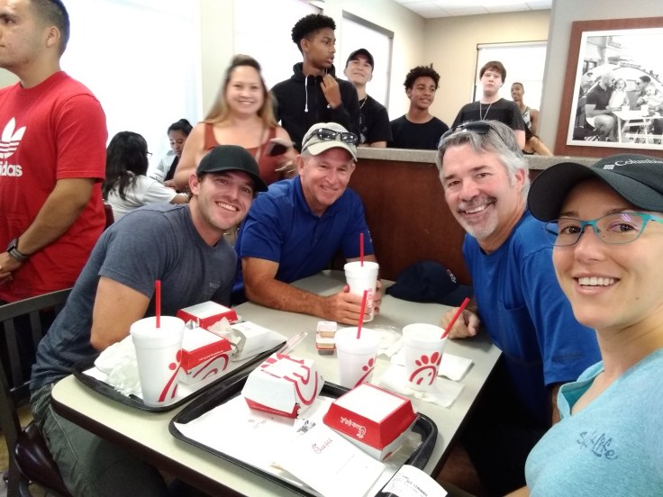 Coach Mike arrived just as I got to the front of the line. He has great timing! He bought lunch for us all and the food was on the table before I even grabbed ketchup from the condiment station. This Chick-fil-A moves exceptionally fast.