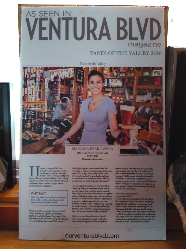 We left the park around 4:30pm to meet her at the Blue Dog Beer Tavern in Sherman Oaks, CA. It was about a 30 minute drive down there (because we were going to opposite way of commute).
