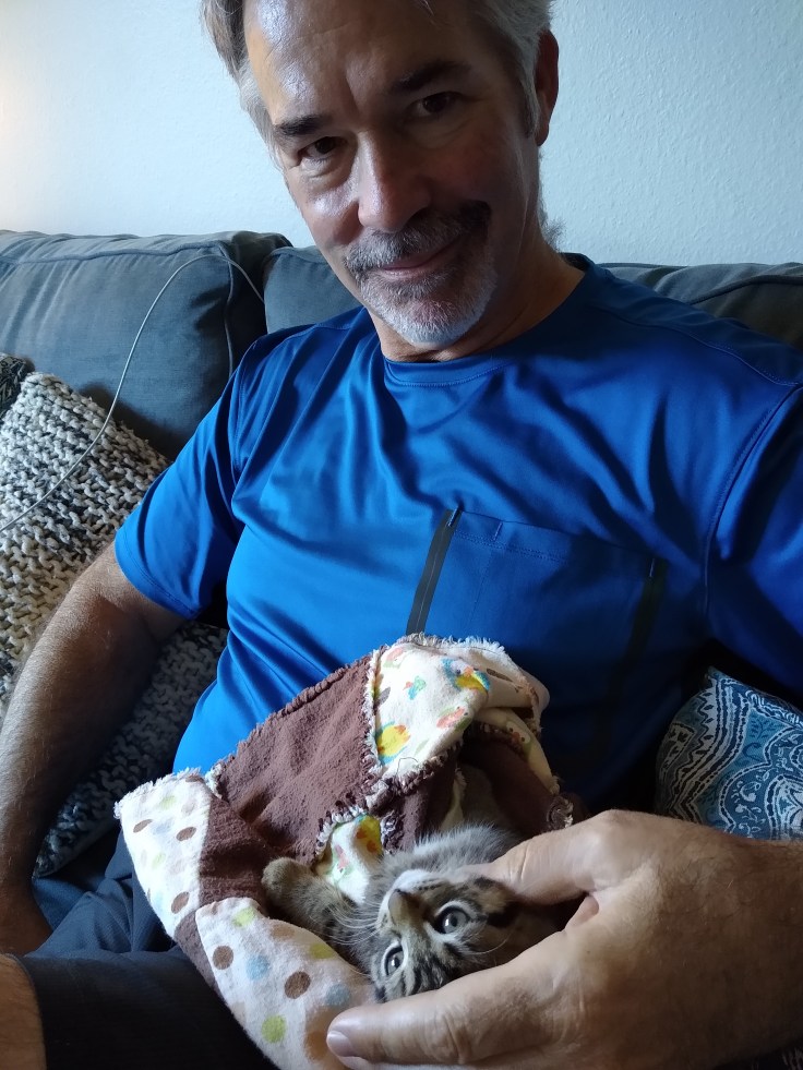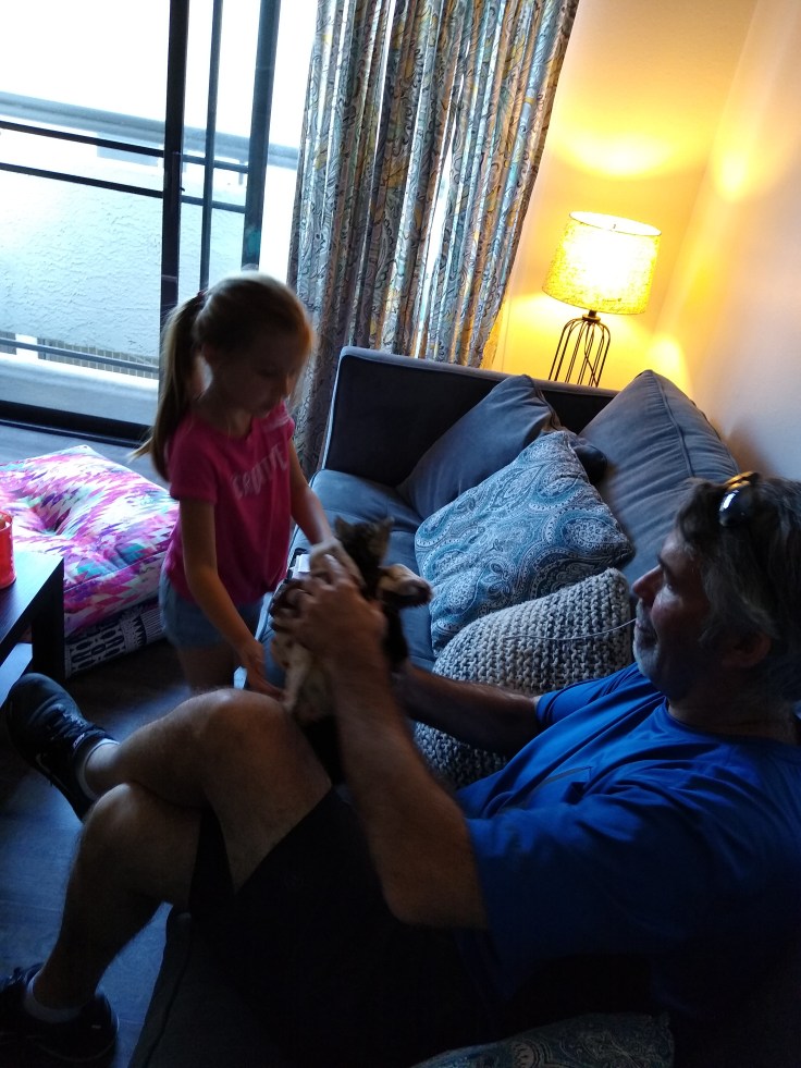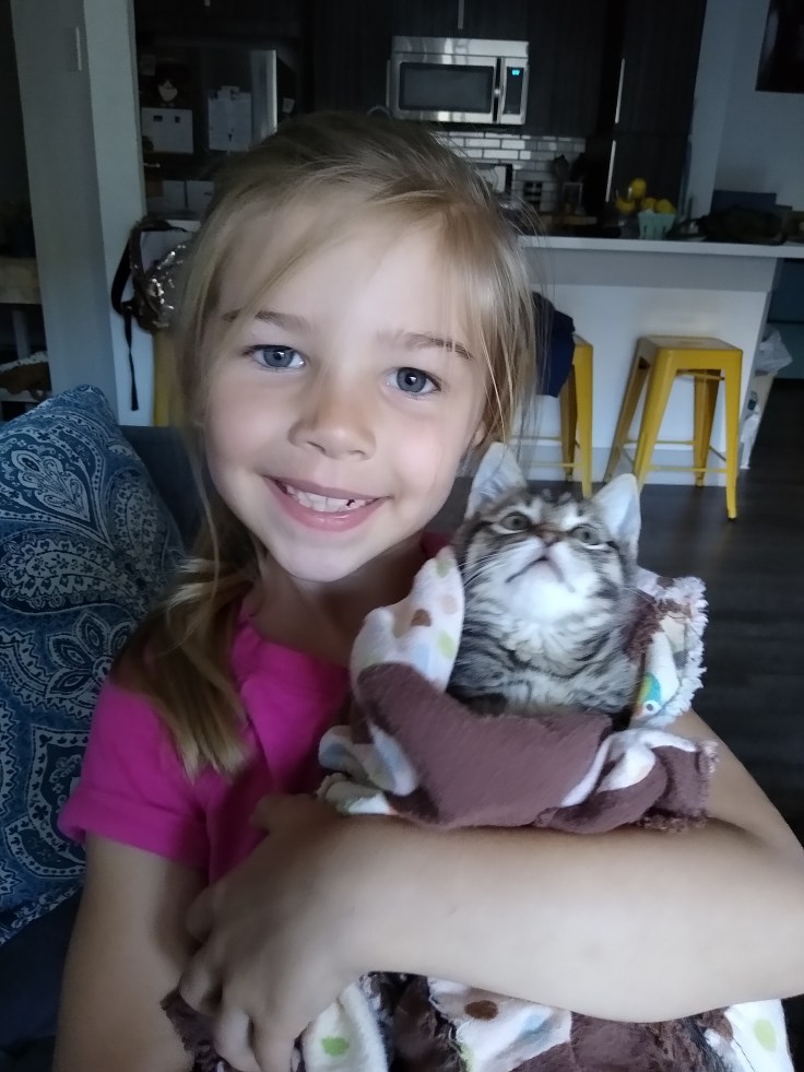 It was the tiniest kitten and so calm and accommodating to Ava’s sometimes rough play. Fred cuddled with it for a little while.