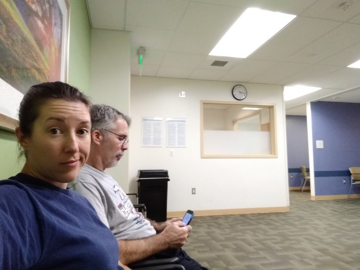 The hospital was, as hospitals always are, full! So we had to wait in the hospital lobby until 4pm to be admitted anyhow. I guess that’s better than the nasty ER lobby.