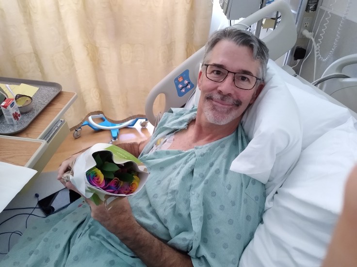 Just then, almost on cue for a comforting distraction, Fred got a flower delivery. It was from Michael and Marey (Fred’s brother and his wife). They were beautiful Unicorn Roses!
