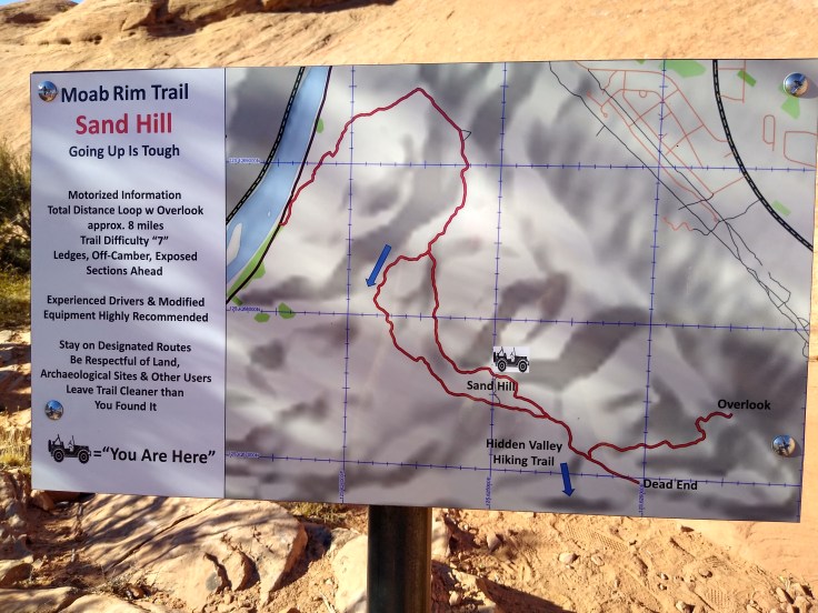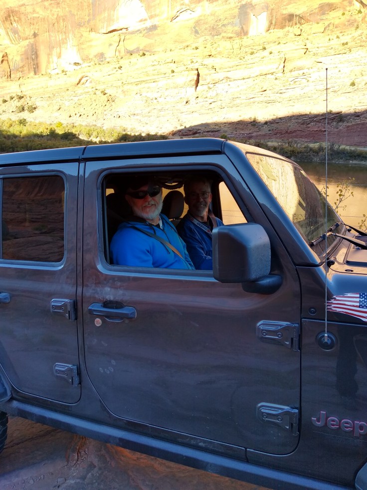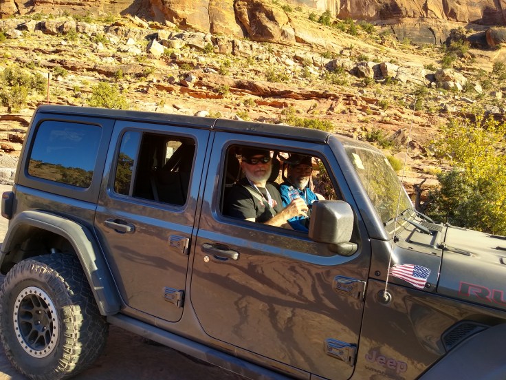 Mike and I woke up today with some apprehension because we had read the trail description for “Moab Rim Trail” after Fred had signed us up on Thursday. The difficulty description basically said, “tight, tippy, and extremely dangerous ledges…This is a dangerous trail.” We both trust Fred but know he is much more of a risk taker than we are and he enjoys the adrenaline rush of danger more than the average man. But we were still all in for the chance to take the adventure with Fred!
