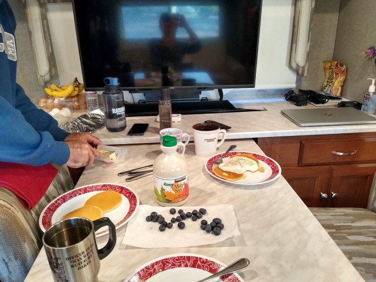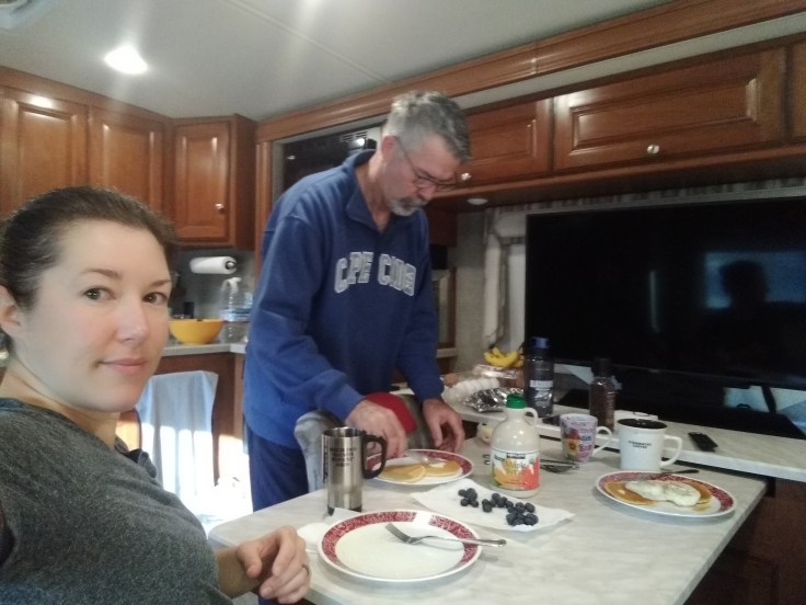 After two days of waking at 6am, we slept in until sunrise (7:30am). Fred made us pancakes and eggs for breakfast.